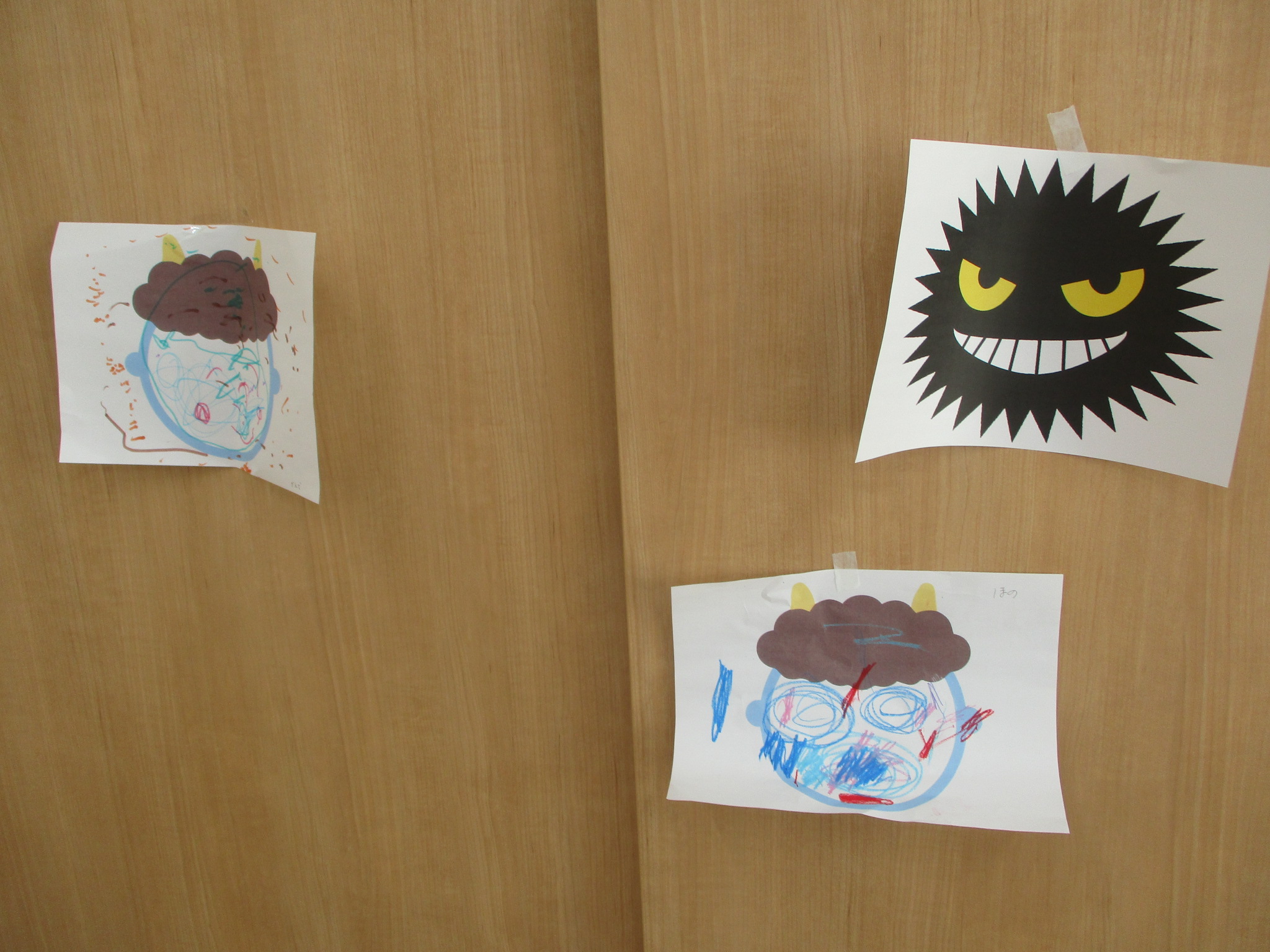 みんな、「このオニはねぇ~」と、思い思いに描いて、いろんなオニさんができましたよ☆