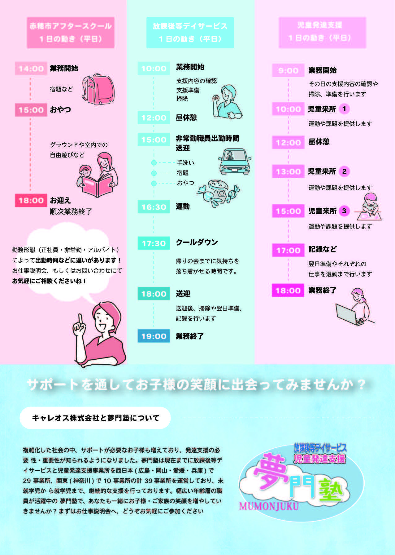 児童発達支援 夢門塾「相生」相談・体験会を開催します。参加無料です。 ご予約・お問合せは、電話0791-56-6205(タツダ・コハラ)までご連絡の上、お気軽にご参加ください。受付・営業時間は、 (平日) 9:00~18 […]