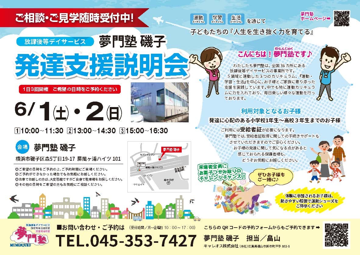 放課後等デイサービス夢門塾 磯子 発達支援説明会を開催します。参加無料です。