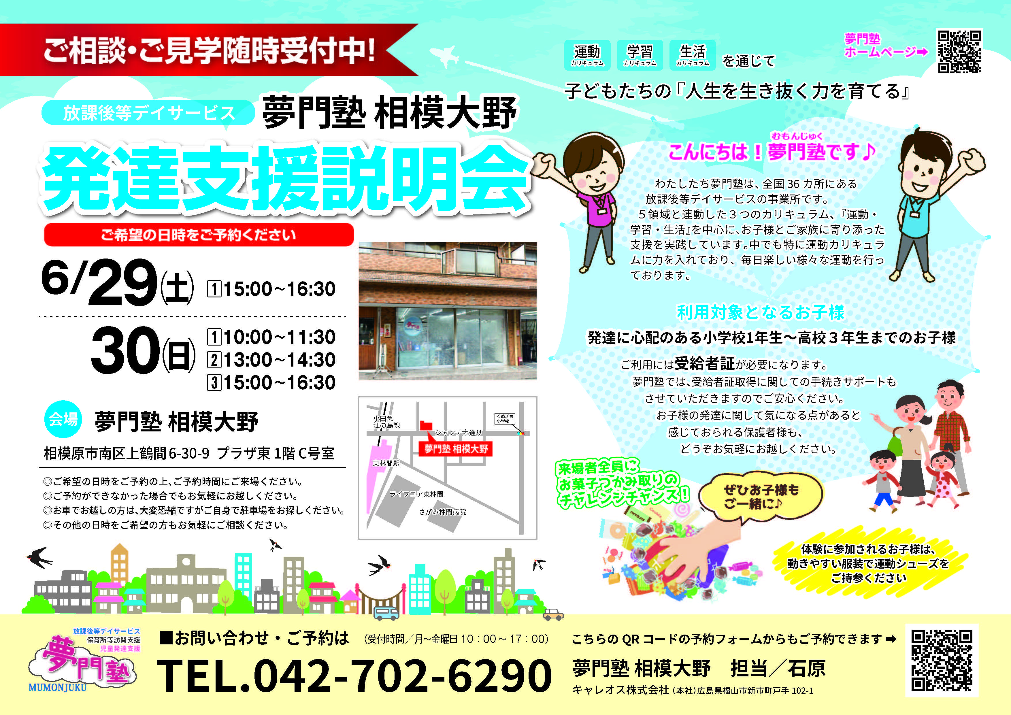 放課後等デイサービス夢門塾 相模大野 発達支援説明会を開催します。参加無料です。
