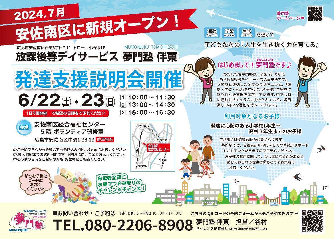 放課後等デイサービス夢門塾 伴東 発達支援説明会を開催します。参加無料です。