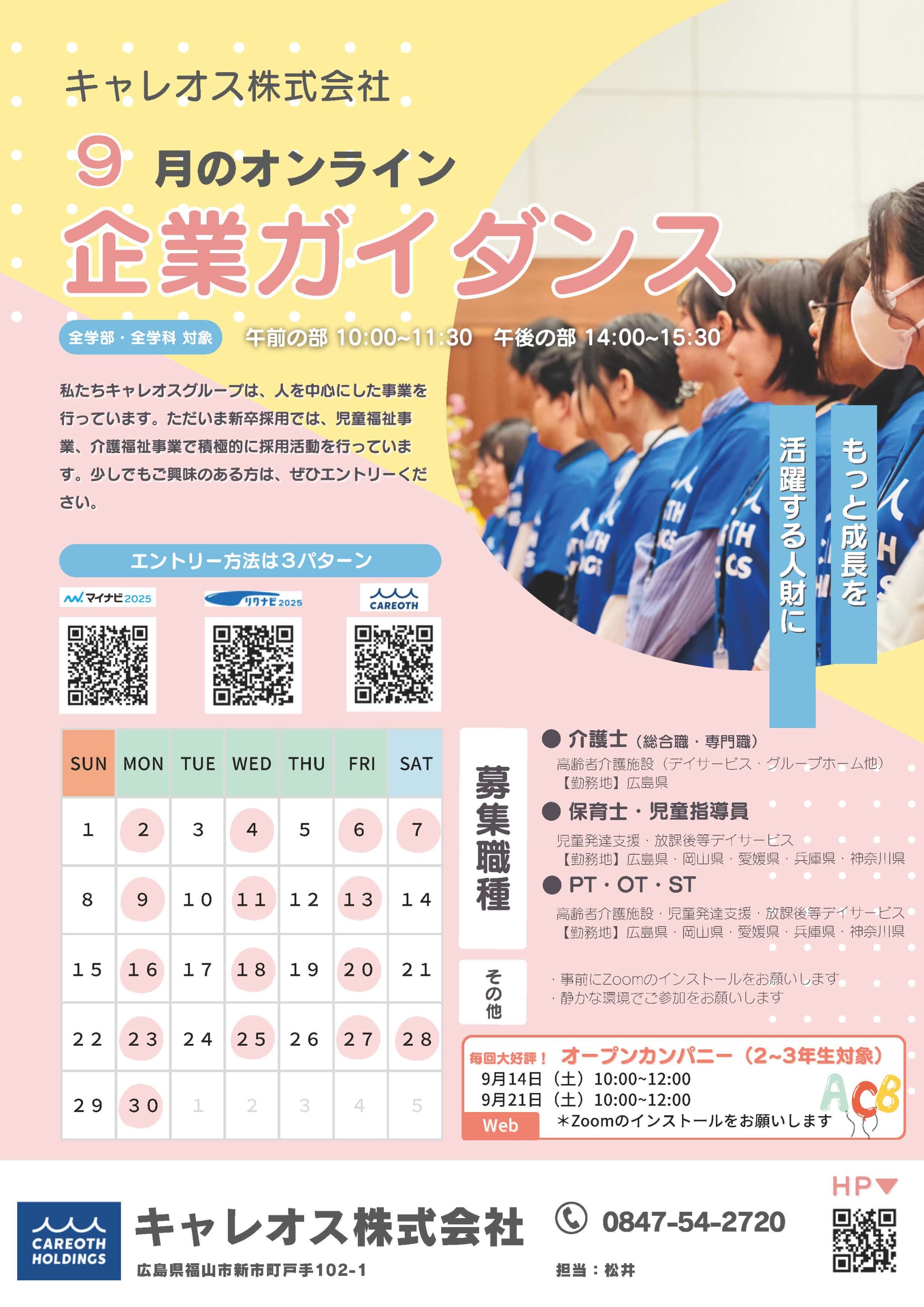 ■ 9月オンライン企業ガイダンスの日程 【要申込】