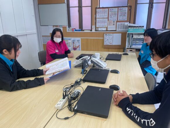 朝礼では、前日の子どもたちの様子や当日のスケジュールを社員同士で共有。続いて、施設内でおやつの購入に使用する独自通貨「ゆうゆうドル」の準備や、出退カード・コップの用意など、細やかな準備にとりかかります。「子どもたちの小さな変化も見逃さないように意識しています」と佐藤先生。今日会う子どもたちの顔を思い浮かべながら丁寧に準備する姿が印象的です。