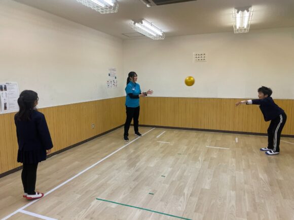 今週の運動プログラムは佐藤先生が企画したバスケットボール。普段はドッジボールが恒例ですが、力加減が難しくトラブルになることも。そこで「みんなで協力する楽しさを知ってほしい」とバスケットボールを取り入れたそう。
